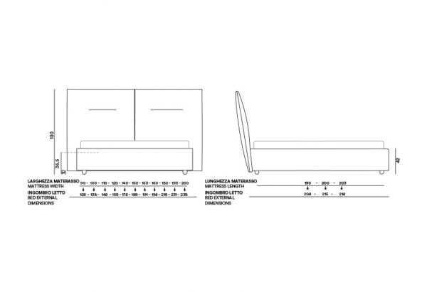 I letti Dorelan sono completamente personalizzabili nelle misure e nelle finiture in tessuto o in pelle. Vieni a trovarci per scoprire tutti i materiali che ti possiamo offrire e scegli quello più adatto al tuo stile.