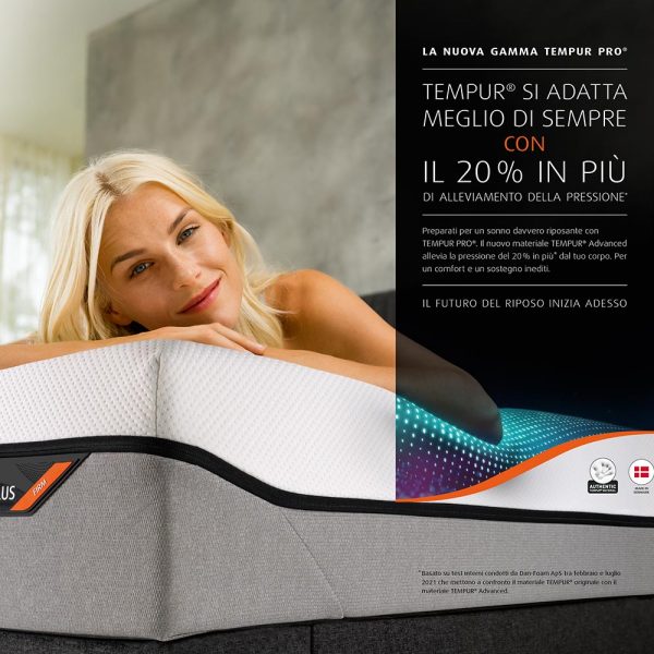Con un’altezza di 21 cm TEMPUR PRO® offre comfort avvolgente e sostegno al corpo.